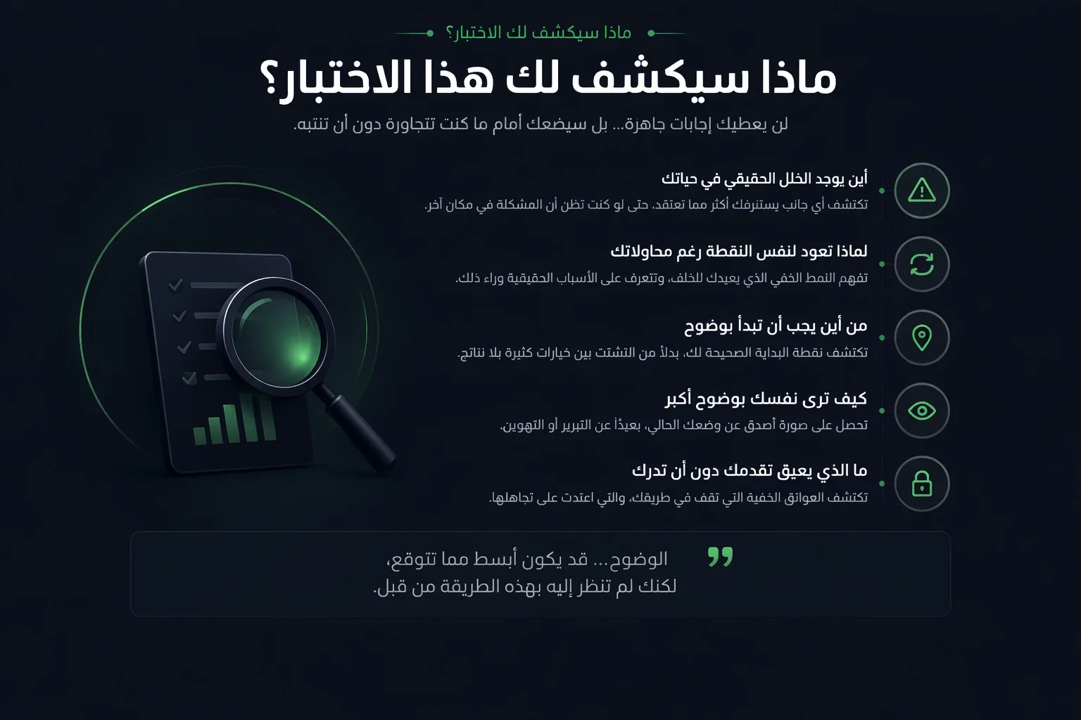 - لا يعتمد على إجابات مثالية… بل على صدقك مع نفسك.